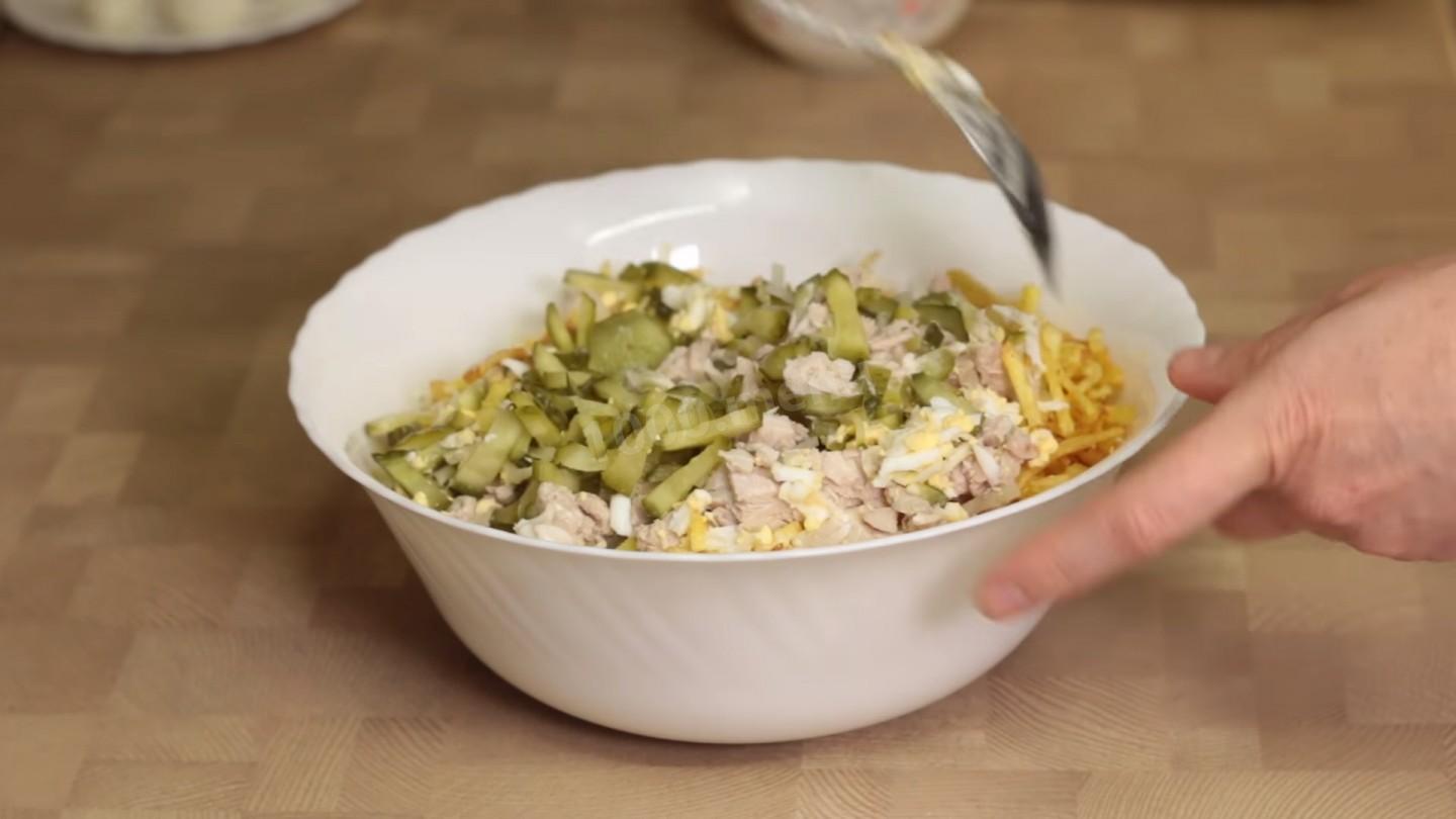 Салат Гнездо глухаря с маринованными огурцами с фото