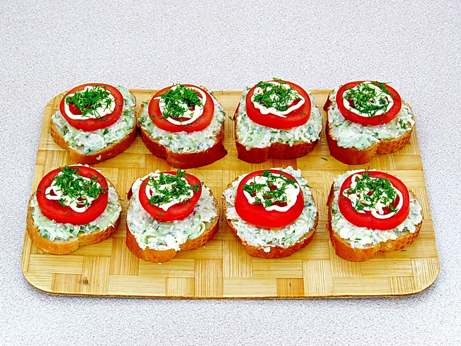 Делюсь рецептом приготовления пикантных бутербродов "Ностальгия" с помидорами и свежим огурцом.