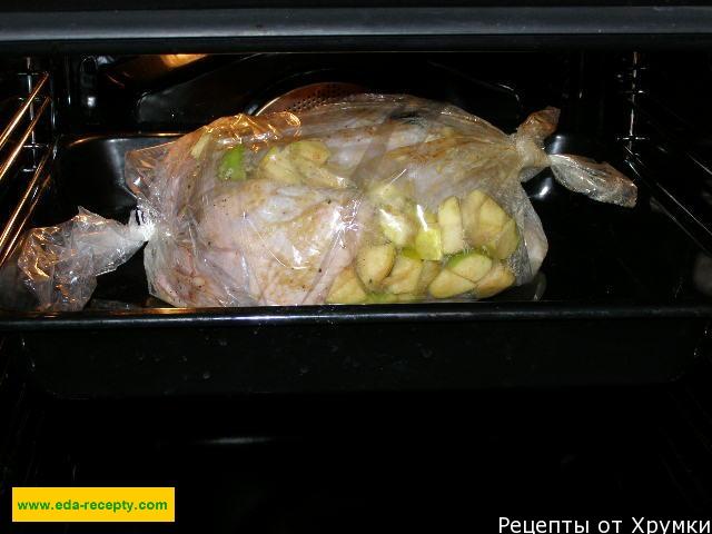 Ссылка на оригинал рецепта: Целая курица с яблочками в духовке на 1000.menu
