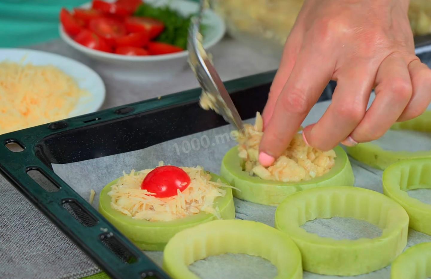 Фаршированные кабачки в духовке кольцами с сыром и курицей с фото