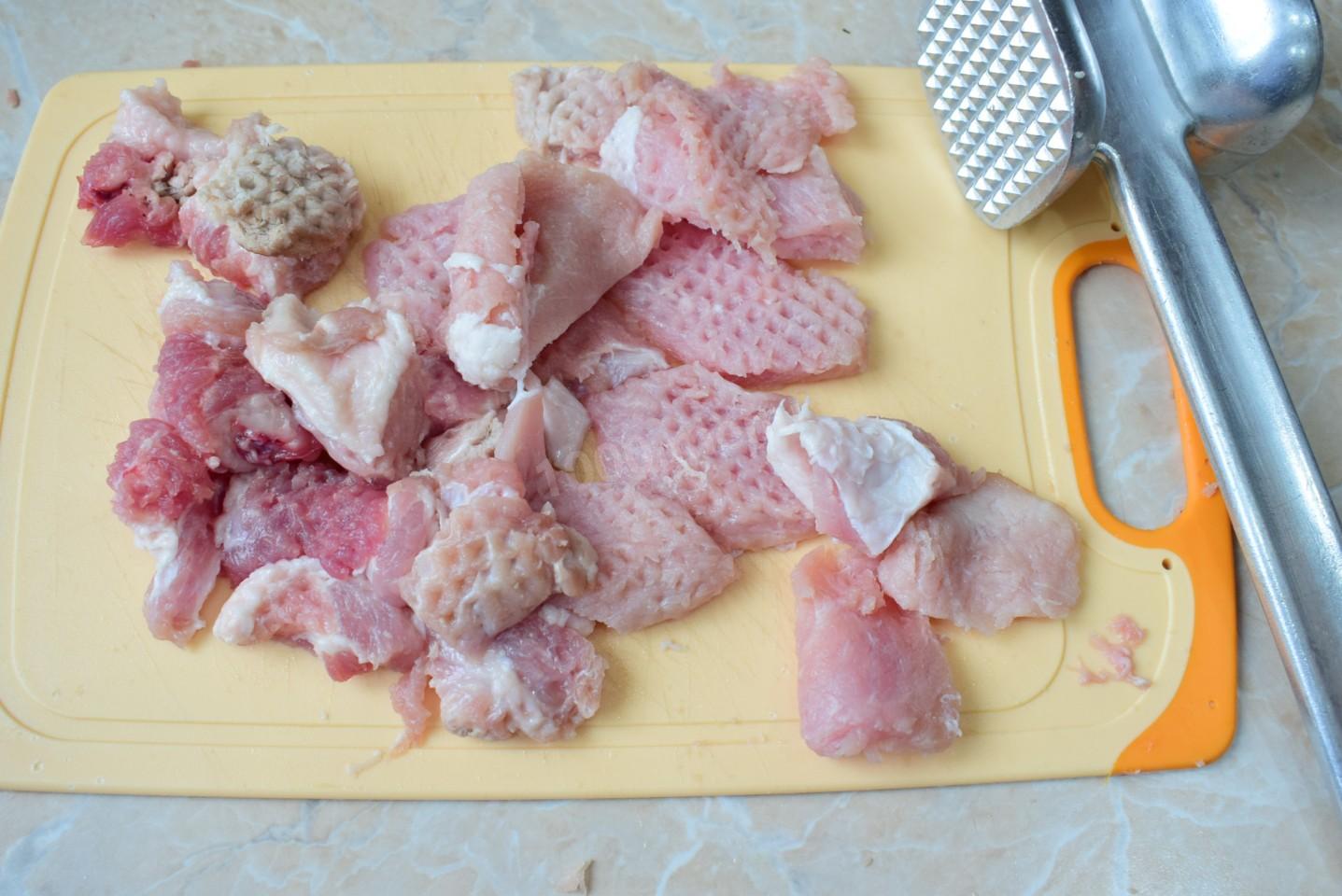 Мясо нарежьте на небольшие кусочки и немного отбейте кухонным молоточком.