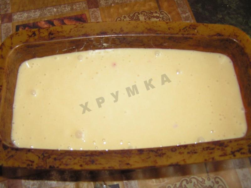Влейте тесто. Поставьте форму в разогретую до 180 градусов духовку и выпекайте до готовности. Готовность кекса определяйте зубочисткой. Проткните ей середину кекса, если зубочистка выйдет сухая, кекс готов.
