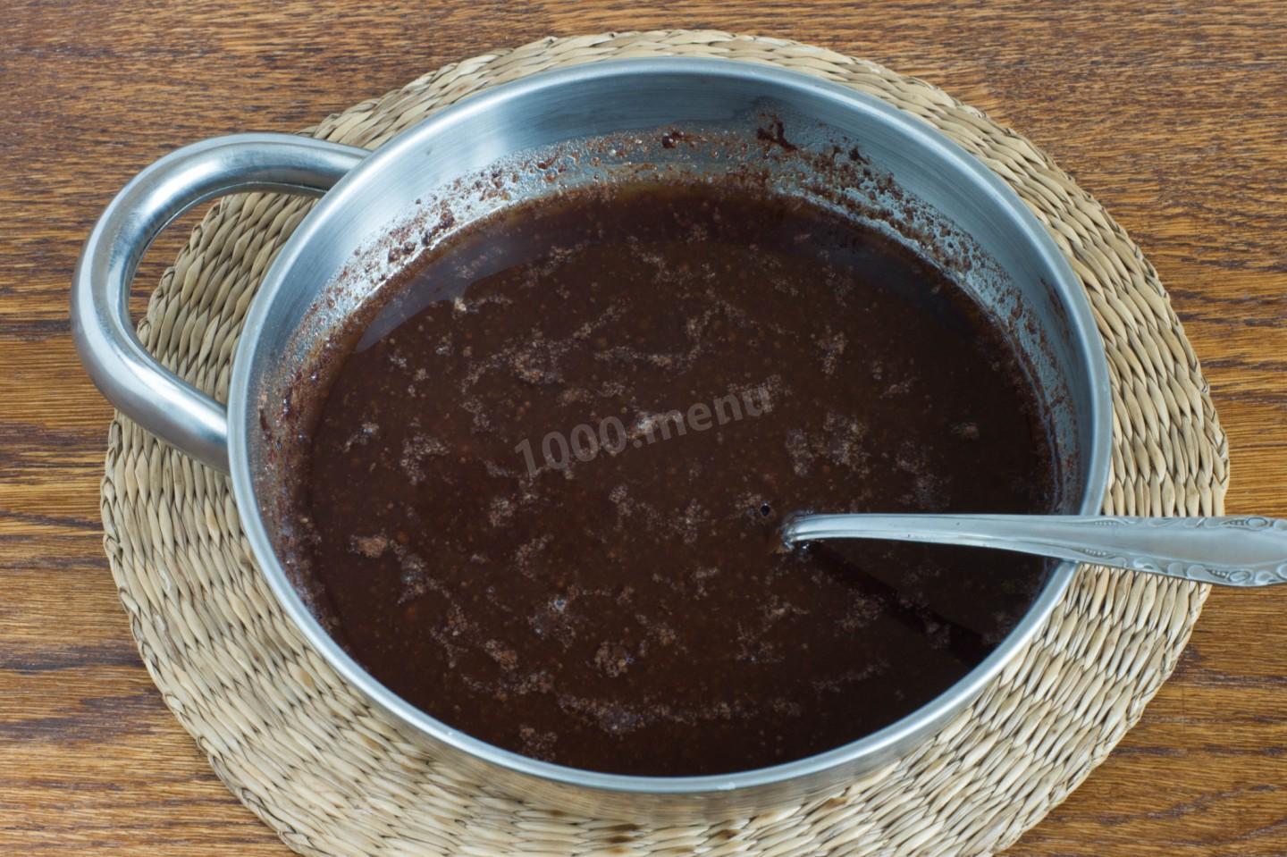 Поставьте миску на водяную баню и нагревайте, помешивая, до полного растворения сахарного песка в смеси растопленного сливочного масла, молока и какао-порошка.