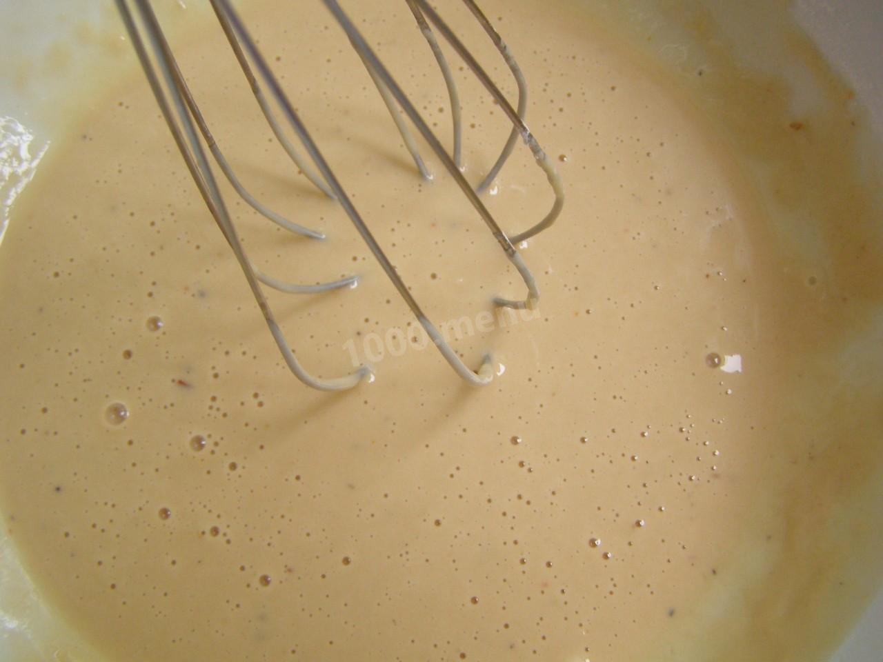 Взбивайте кляр венчиком или вилкой - как удобнее. А потом влейте тонкой струйкой квас, не переставая орудовать венчиком. Пузырьки воздуха, содержащиеся в квасе, сделают корочку из кляра воздушной и хрустящей.