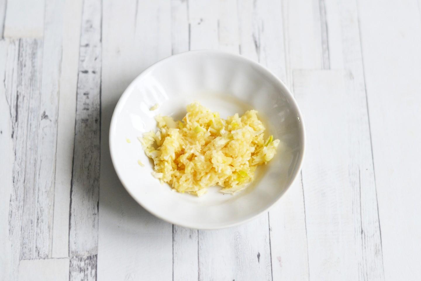 Чеснок очистите и натрите на мелкой тёрке или пропустите через пресс.