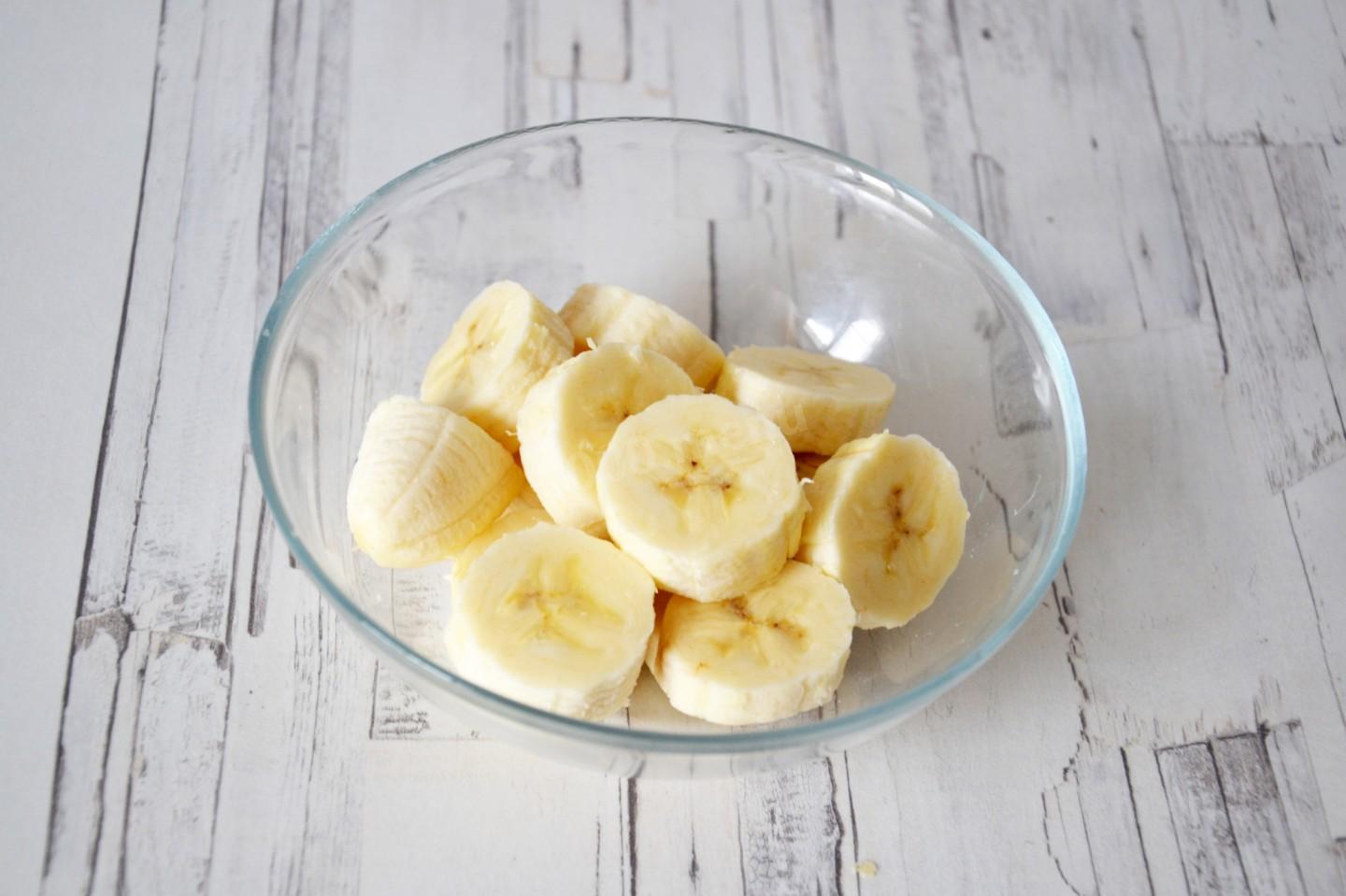 Банан очистите от кожуры и нарежьте тонкими кружочками.