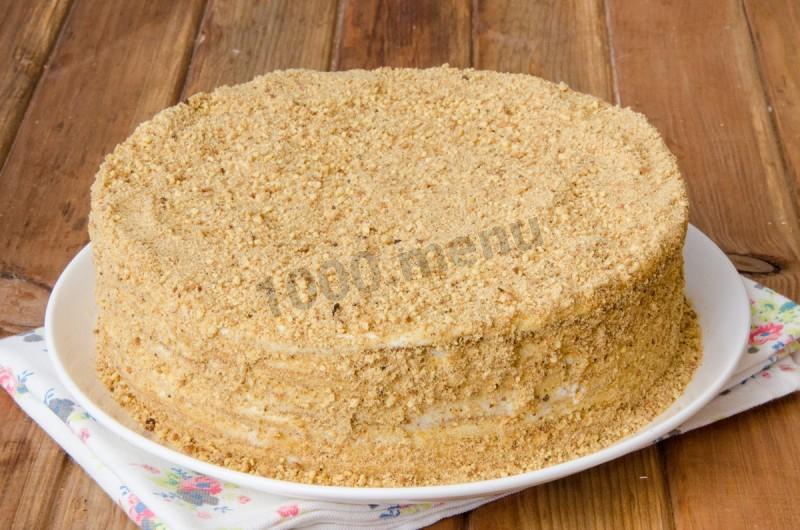 И обсыпьте ею торт со всех сторон. Отправьте медовик в холодильник на 4-5 часов (или на дольше) для пропитки.