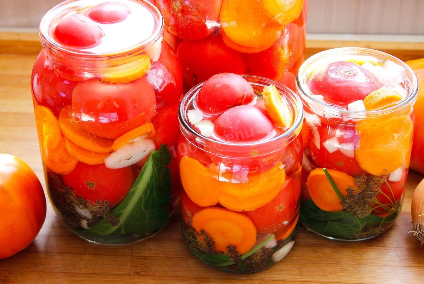 Отменные и самые вкусные овощи в одной баночке! Маринованные помидоры с морковью и луком на зиму напомнят вам о жарком лете. Овощи можно предложить к праздничному столу. Они идеально дополнят мясные блюда и картофель. Готовьте впрок, вам точно понравится!Аля ЖемчужинкаАвтор рецепта