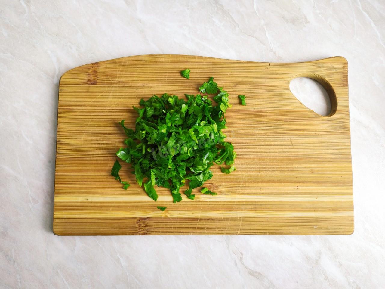 Петрушку хорошо промойте под проточной водой и мелко нарубите ножом.