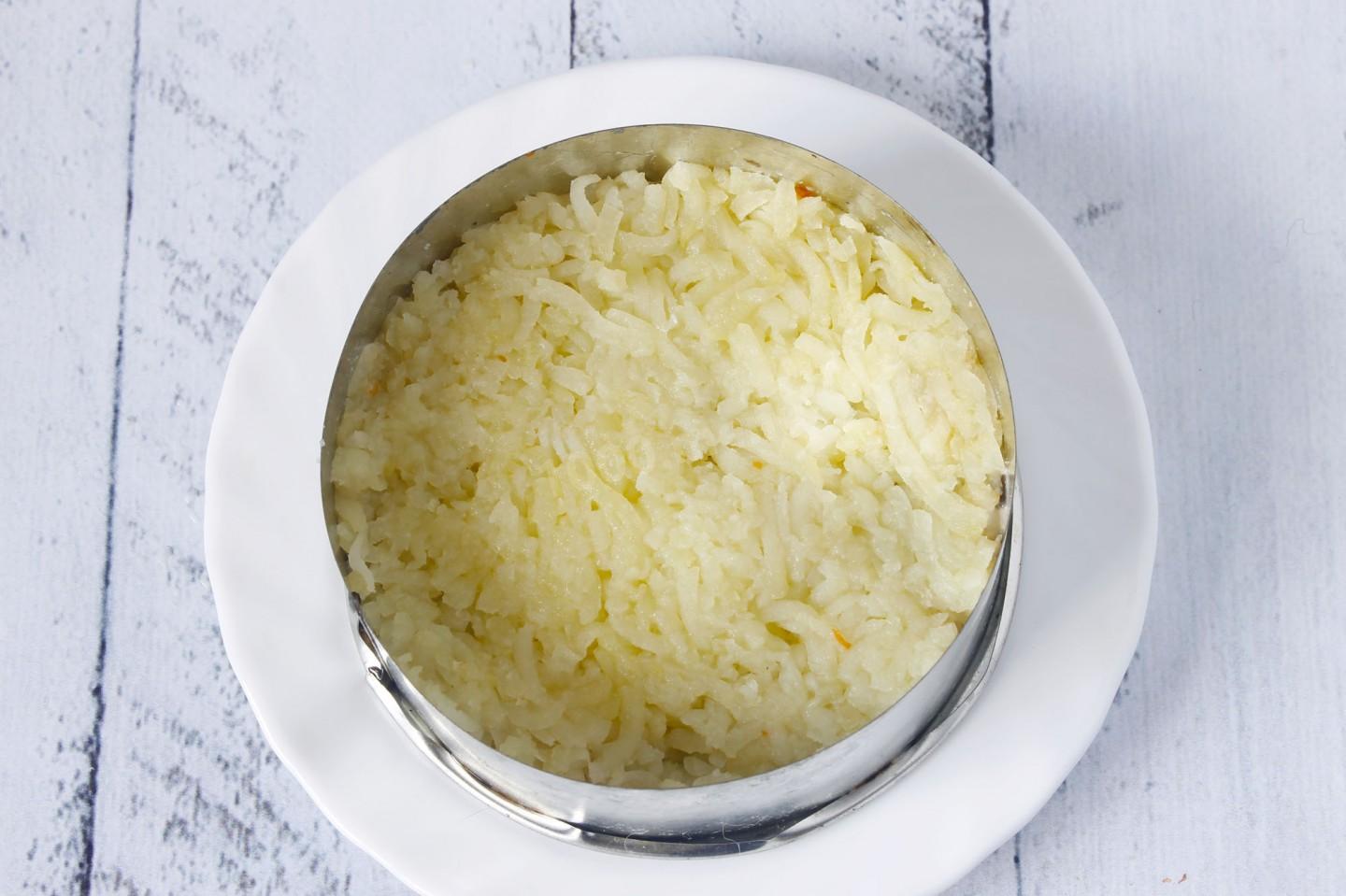 Третий слой - тертая вареная морковь, которую также нужно хорошо примять.