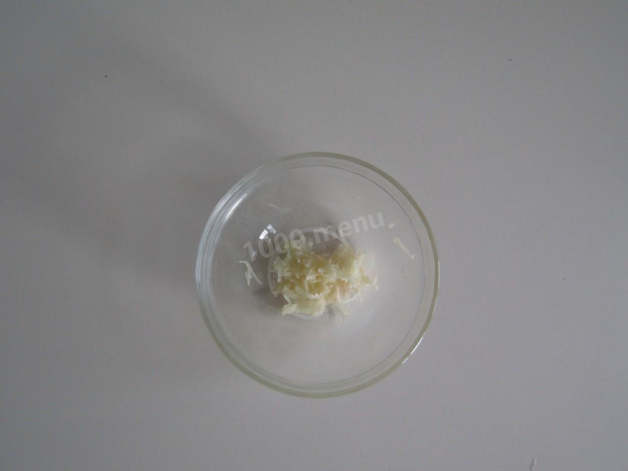 Чеснок очистите, измельчите удобным для Вас способом. Я натерла на мелкой терке, но вы можете пропустить его через пресс или мелко нарезать ножом.