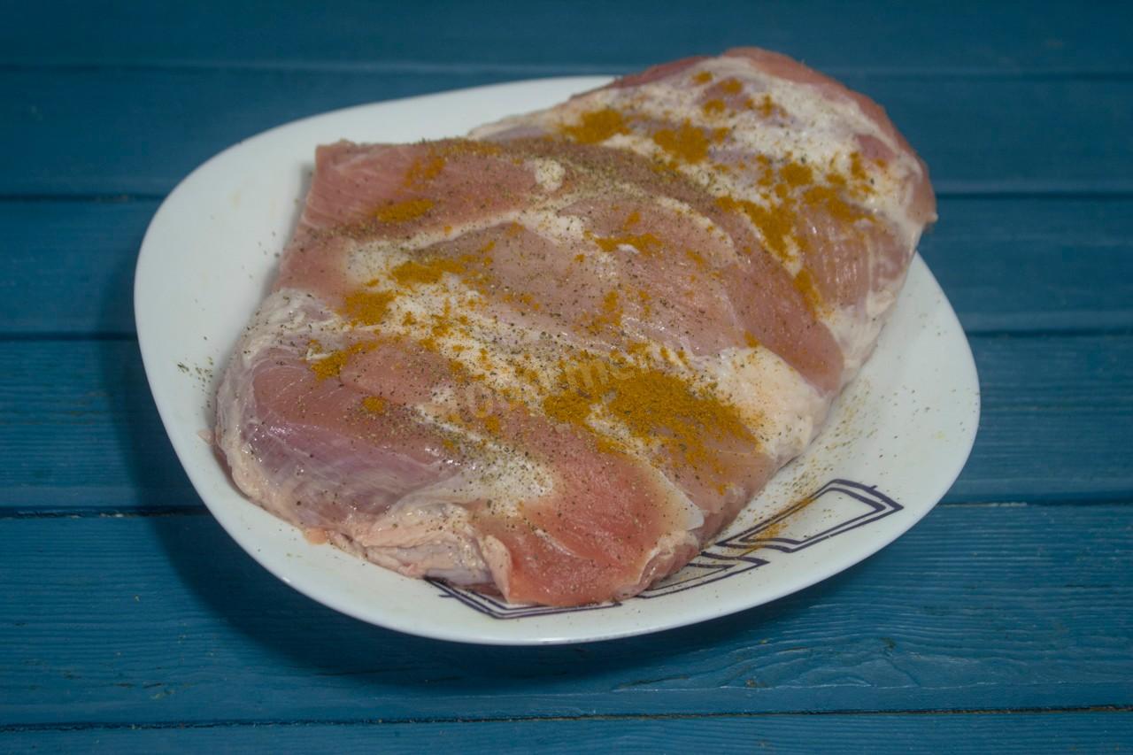 Главный ингредиент - это конечно же хороший свиной окорок. Это одна из самых вкусных частей свиньи, представляет собой тазобедренную или плечелопаточную часть свиной туши высшего сорта. Мясо должно быть свежим, с приятным цветом и запахом и не слишком жирным