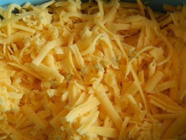 Сверху присыпаем сыром. Сыра можно класть побольше.