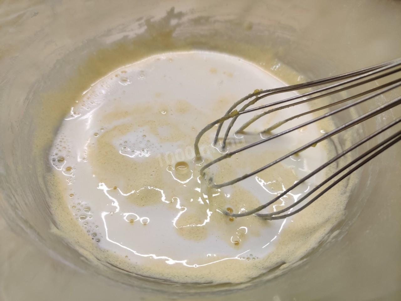 Горячее молоко снимите с плиты и влейте первую часть в миску. Перемешайте, чтобы обе смеси хорошо соединились.