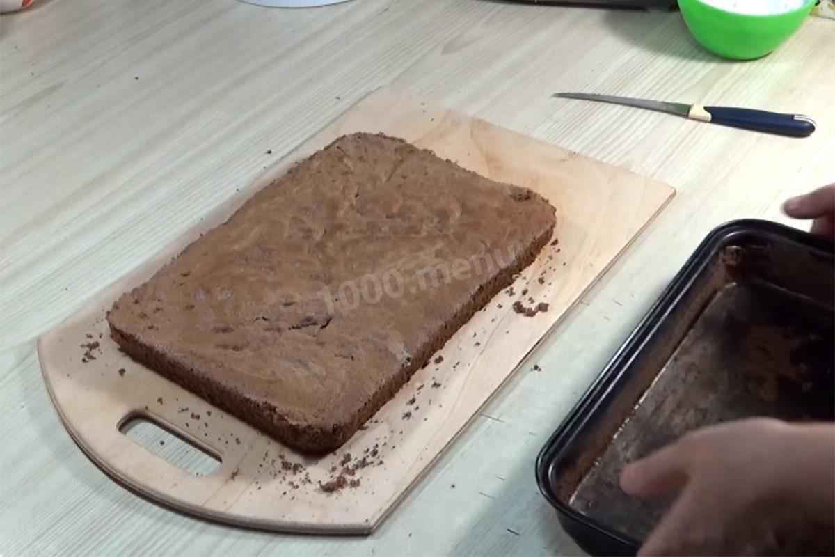 Извлеките бисквит - надрежьте по периметру и переверните, он выпадет.