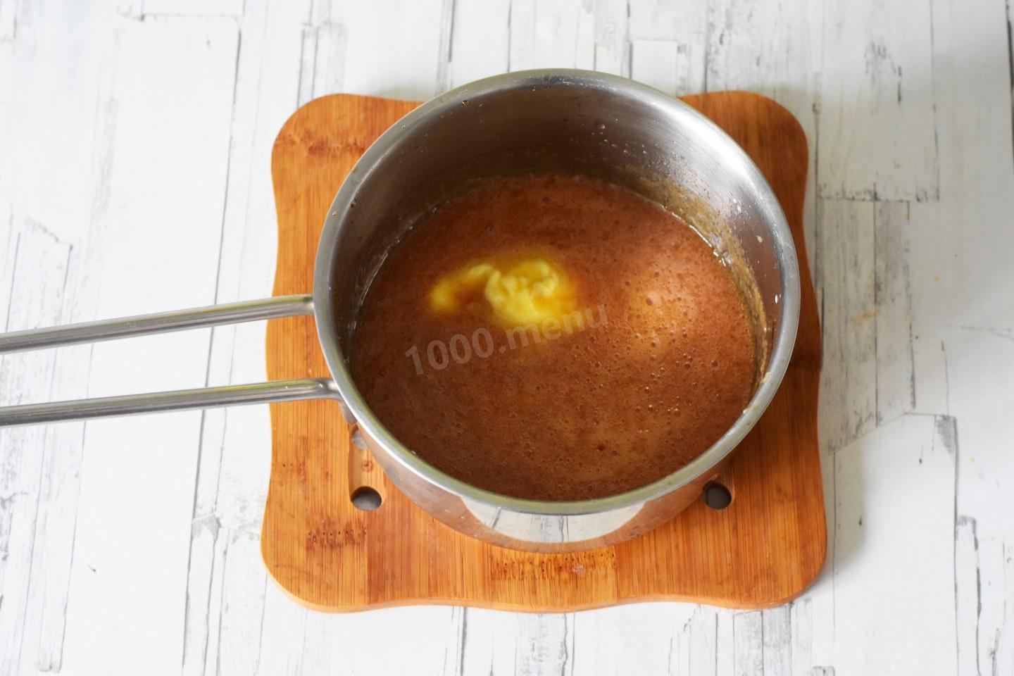 Влейте в растопленный сахар горячие сливки и быстро перемешайте. Следом добавьте сливочное масло и соль и перемешайте.