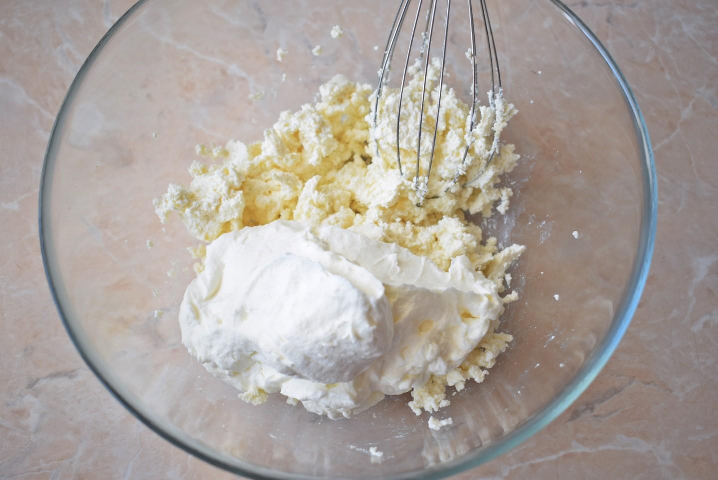 Постепенно смешайте всю взбитую сметану с творогом. По желанию количество творога можно немного уменьшить или увеличить.