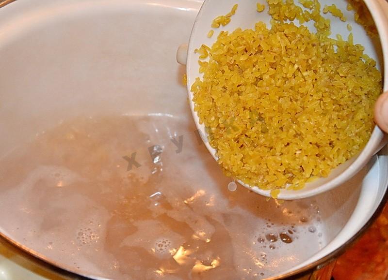 Накрываем кастрюлю крышкой и готовим на минимальном огне, пока чечевица и булгур не станут мягкими.