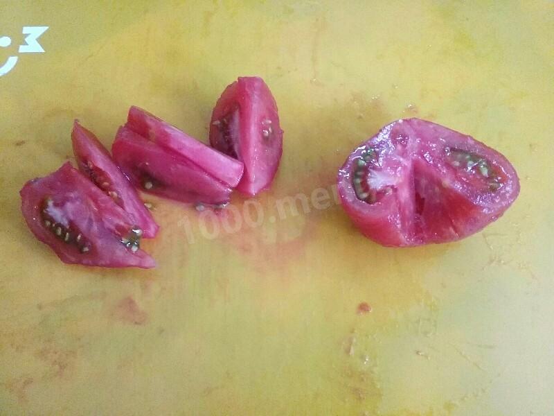 Вырезаем серединку и разрезаем помидор на 4-8 частей по желанию
